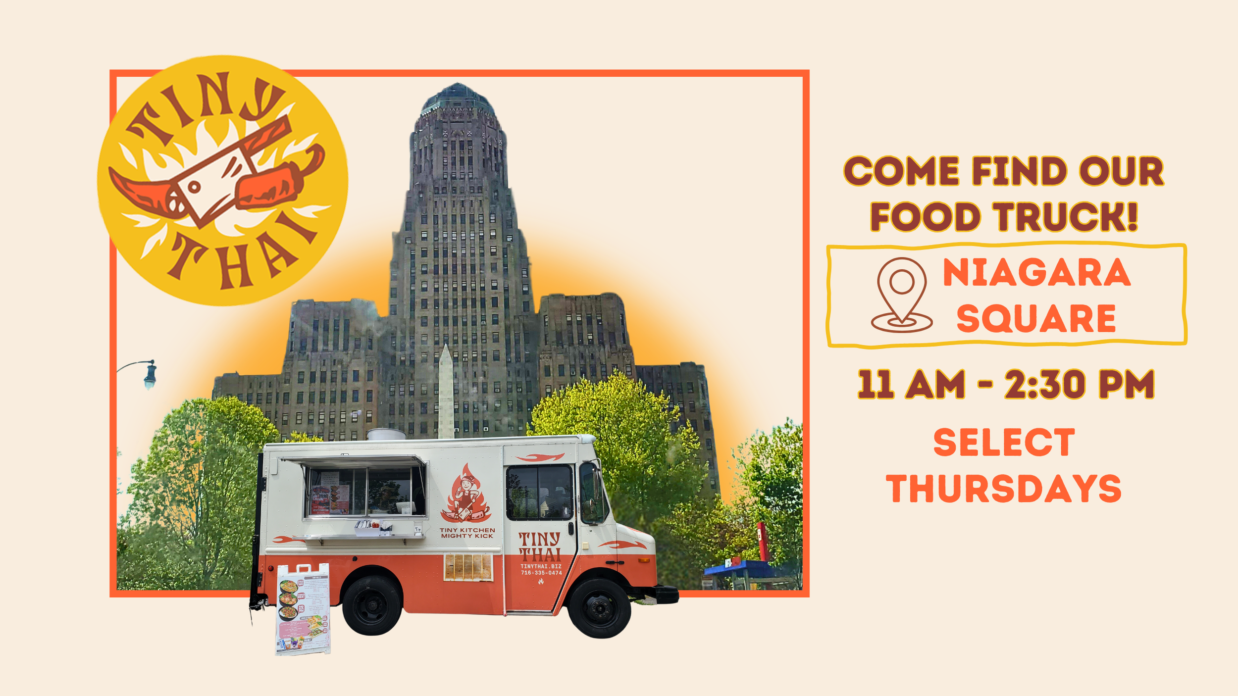 Back to All Events Food Truck Thursdays - Niagara Square Thursday, July 3, 2025 11:00 AM 2:30 PM Downtown Niagara Square 1 Niagara Square Buffalo, NY, 14202 United States (map) Google Calendar ICS Come hang out with Tiny Thai at Niagara Square for Food Truck Thursdays! We’ll be dishing up some mouth-watering Thai food that you won’t want to miss. Stop by and treat yourself from 11 am to 2:30 pm. We can’t wait to see you there!